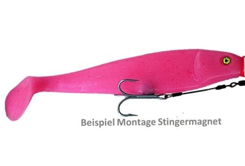 Die hier angebotenen STINGER MAGNETE "SPEZIAL KLEIN" sind N52-Neodym- Dauermagnete mit extra hoher magnetischer Anziehungskraft zur Angsthaken- Fixierung beim Spinnfischen, Schleppen und Jiggen mit Gummiködern. Durch die spezielle Kunststoffummantelung und bei Verwendung des GUMMIFISCHKLEBERS, sind die Magnete hervorragend gegen Korrosion geschützt und somit auch zum Meeresangeln bestens geeignet. Unsere „Spezial klein“-Magnete werden, im Gegensatz zu den anderen Stinger-Magneten, in den Gummifisch-Körper eingeklebt. So haben sich unsere Magnete seit vielen Jahren, in den vor allem unter den Meeresanglern bekannten Royber -Jigs verbaut, bereits zig-tausendfach bewährt.