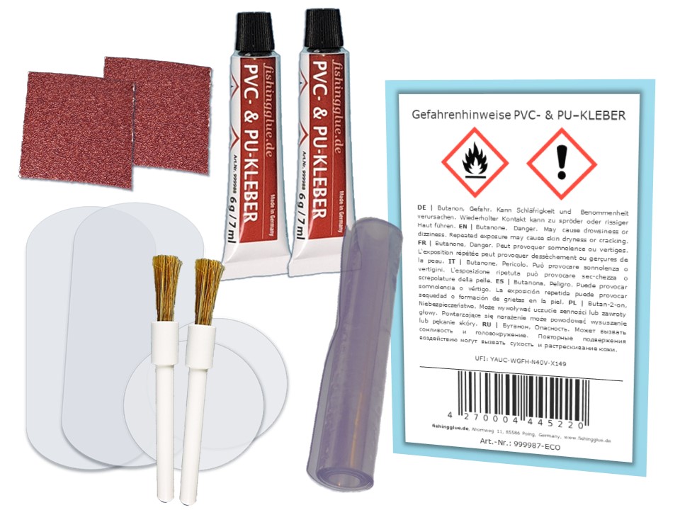 - Reparaturen und Verklebungen mit fishingglue.de PVC- & PU- Reparaturmaterialien sind bis ca. 60 °C wärmestabil.